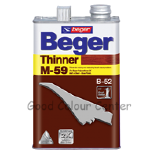 Beger Thinner M-59 เบเยอร์ ทินเนอร์ เอ็ม-59 ทินเนอร์เกรดพิเศษ ใช้เจือจางโพลียูรีเทนชนิดด้านและวาร์นิชชนิดด้าน ใช้ผสมกับสีทับหน้า ยูนีเทน B-5000 (ชนิดด้านหรือกึ่งเงา) ใช้กับพื้นไม้ภายใน