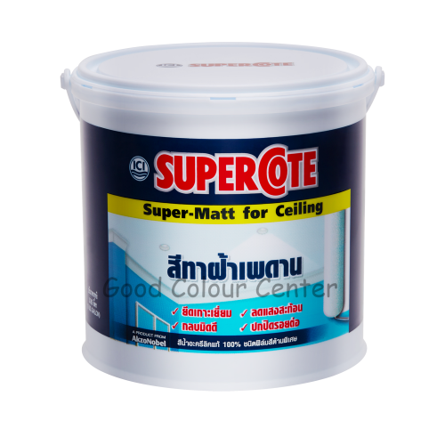 ซูเปอร์โคท สีทาฝ้าเพดาน เป็นสีน้ำอะครีลิค ชนิดฟิล์มสีด้านเป็นพิเศษ ผลิตจากกาวอะครีลิคคุณภาพเพื่อการตกแต่งฝ้าเพดานโดยเฉพาะ ยึดเกาะกับพื้นผิว และให้การปกปิดดีเยี่ยม ช่วยอำพรางความบกพร่องจากงานปูน อาทิเช่น รอยต่อของฝ้าเพดานที่ฉาบไม่เรียบ อีกทั้งยังช่วยลดการสะท้อนของแสงบนฝ้าเพดาน ไม่ผสมสารตะกั่วและปรอท เหมาะสำหรับการตกแต่งพื้นผิว และผ้ายิปซั่มทุกชนิด